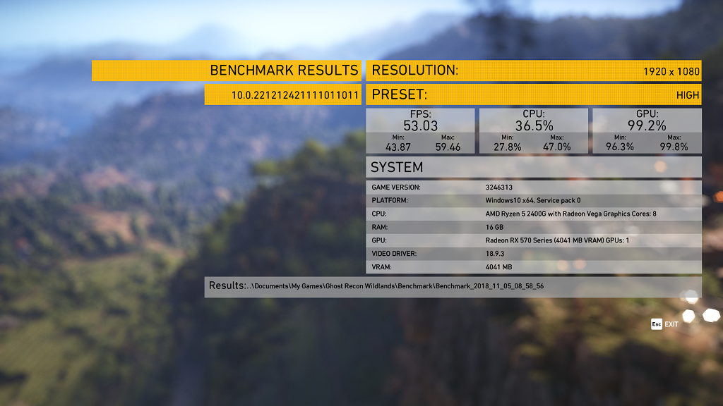 Thuộc dạng game ngốn phần cứng khủng nên kết quả cho ra hơi thấp. Mức khung hình trung bình trong game là 44 FPS, thấp nhất là 28 FPS, cao nhất là 64 FPS. Dù ở một số phân đoạn game bị tụt FPS khá nặng, song mình cũng có thể trải nghiệm game ở mức chấp nhận được.